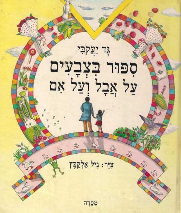 “זהו ספר חביב עם ציורים מקסימים,שיש בו שני סיפורים:"סיפור בצבעים" בו האב מספר לילדתו ספור על הצבעים , בו כל דבר שמצוי בעולם נצבע בצבע המיוחד לו,כמו למשל:"כשנברא העולם, נצבעו בירוק הדברים הכי טריים ורעננים: המלפפונים והפלפלים,הדשא והעצים וגם הספסל שבשדרה","בכחול נצבעו כל הדברים שנמצאים הכי רחוק,כל המקומות החלומיים: הים העמוק, השמיים הגבוהים....." וכך הלאה, "ורק הקשת הנפלאה שבענן זכתה בכל הצבעים כול”