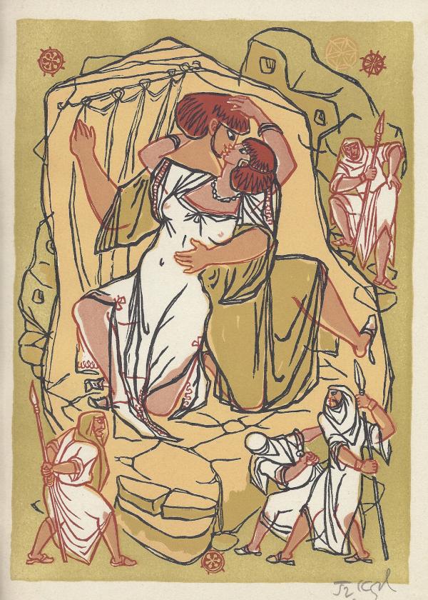 2. התמונה המופיעה כאן היא התמונה היחידה בצבע המופיעה בספר וזאת אינה התמונה על הכריכה (שם מופיעה דמותו של שמשון בפרופיל בתוך מסגרת דמוית מדליון) אלא על העמוד המשקיף אל דף השער. שאר האיורים הם רישומים בשחור-לבן. כפי שנרשם בסוף הספר - "פתוח לינול מקורי ורשומים מעשה ידי שרגא ווייל".