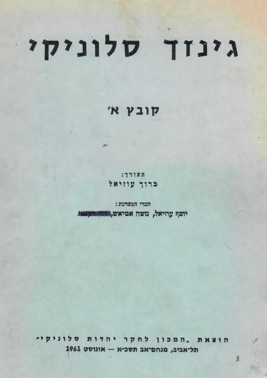 גינזך סלוניקי - קובץ א' מאת ברוך עוזיאל | סימניה - ספרים, סופרים וחברים