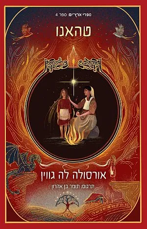 "וכך אוגיון, שהוא מג גדול, עמד בדלת הבית הקטן ליד שובר הגלים, והזקנה פתחה לו את הדלת. ואז אוגיון צעד לאחור והרים את מטה האלון שלו והרים גם את ידו, ככה, כאילו הוא מנסה להגן על עצמו מפני אש בוערת, ומרוב תדהמה ופחד אמר בקול את שמה האמיתי - 'דרקון!'