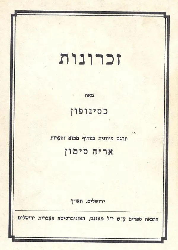אבל לא, למרבה המזל זה תרגום מצוין. השפה נהירה. כסנופון כתב פשוט, ללא פעלולים מילוליים או התפלפלויות לשוניות, והתרגום הזה לא מנסה לסבך את הכתיבה שלו.