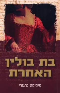 הוא הנהן, ואני קדתי קידה עמוקה כשעזב אותי. התרוממתי והלכתי באטיות לחדר השינה של בעלי. הייתה לי מראה קטנה על הקיר. עמדתי לפניה והבטתי בהשתקפותי. "יהיה בסדר", לחשתי לעצמי. "אני בת בולין, אין זה עניין פעוט, ואמי בת האוורד, משפחה העתידה להיות אחת האדירות בארץ. אני בת האוורד, בת בולין". נשכתי את שפתיי. "אבל גם היא".