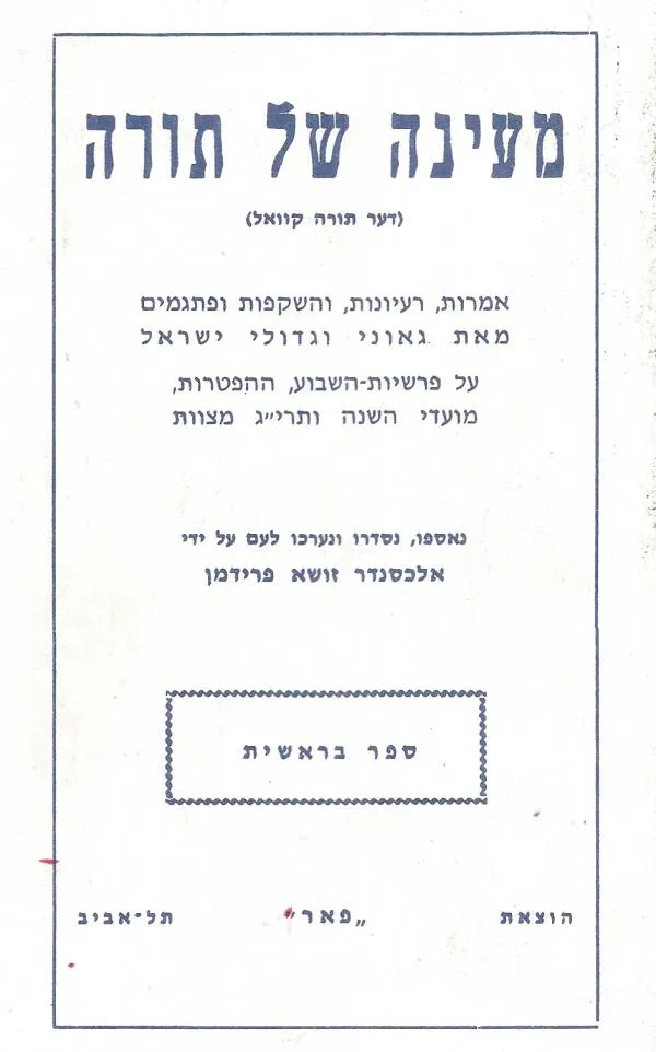 מעינה של תורה: ספר בראשית מאת אלכסנדר זושא פרידמן | סימניה - ספרים, סופרים וחברים