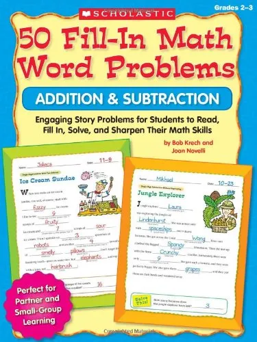 50 Fill-in Math Word Problems: Addition & Subtraction: Engaging Story Problems for Students to Read, Fill-in, Solve, and Sharpen Their Math Skills מאת Bob Krech - ביקורות וקהילה | סימניה - ספרים סופרים וחברים