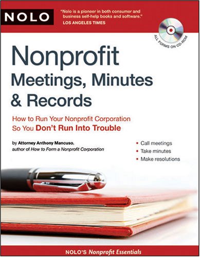 Nonprofit Meetings, Minutes & Records also provides useful tips and advice on how to do important tasks, such as organizing records, preparing meeting folders, and taking minutes. Plus, all necessary documents are included on the CD-ROM. It's everything you need to keep your nonprofit running smoothly and legally.