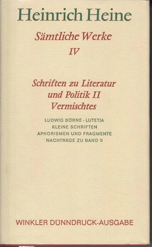 Sämtliche Werke IV מאת Heinrich Heine - ביקורות וקהילה | סימניה - ספרים סופרים וחברים
