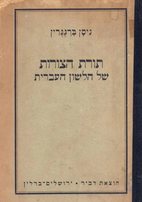 תורת הצורות של הלשון העברית (הוצ' דביר 1924) מאת ניסן ברגגרין | סימניה - ספרים, סופרים וחברים