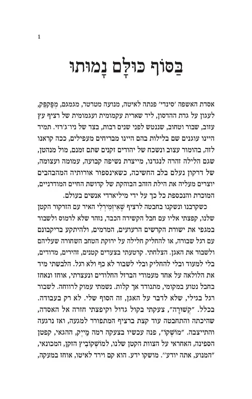 זהו ספר אפל וקודר, לעיתים כדי ייאוש, קורע ובה בעת מכמיר לב, כואב עד מוות אבל גם מצחיק, לופת בגרון וחונק, לא מותיר מקום לבריחה מן המציאות המרה והנוראה של החורבן - החורבן הלאומי, של הבית, של ישראל, והחורבן האישי, חורבן החיים, המשפחה, הבית, של גיבוריו.